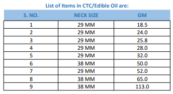 CTC preforms are commonly used for packaging edible oil. These preforms can be used to manufacture PET bottles that can hold around a liter of edible oil.