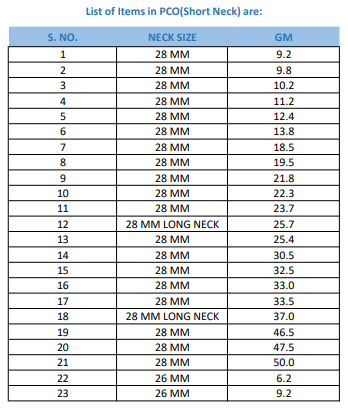 Plastic Closure Only or PCO caps are the traditional long height caps for Carbonated Soft Drinks (CSD), Cold Fill Juices, Edible Oil & Industrial Chemicals.